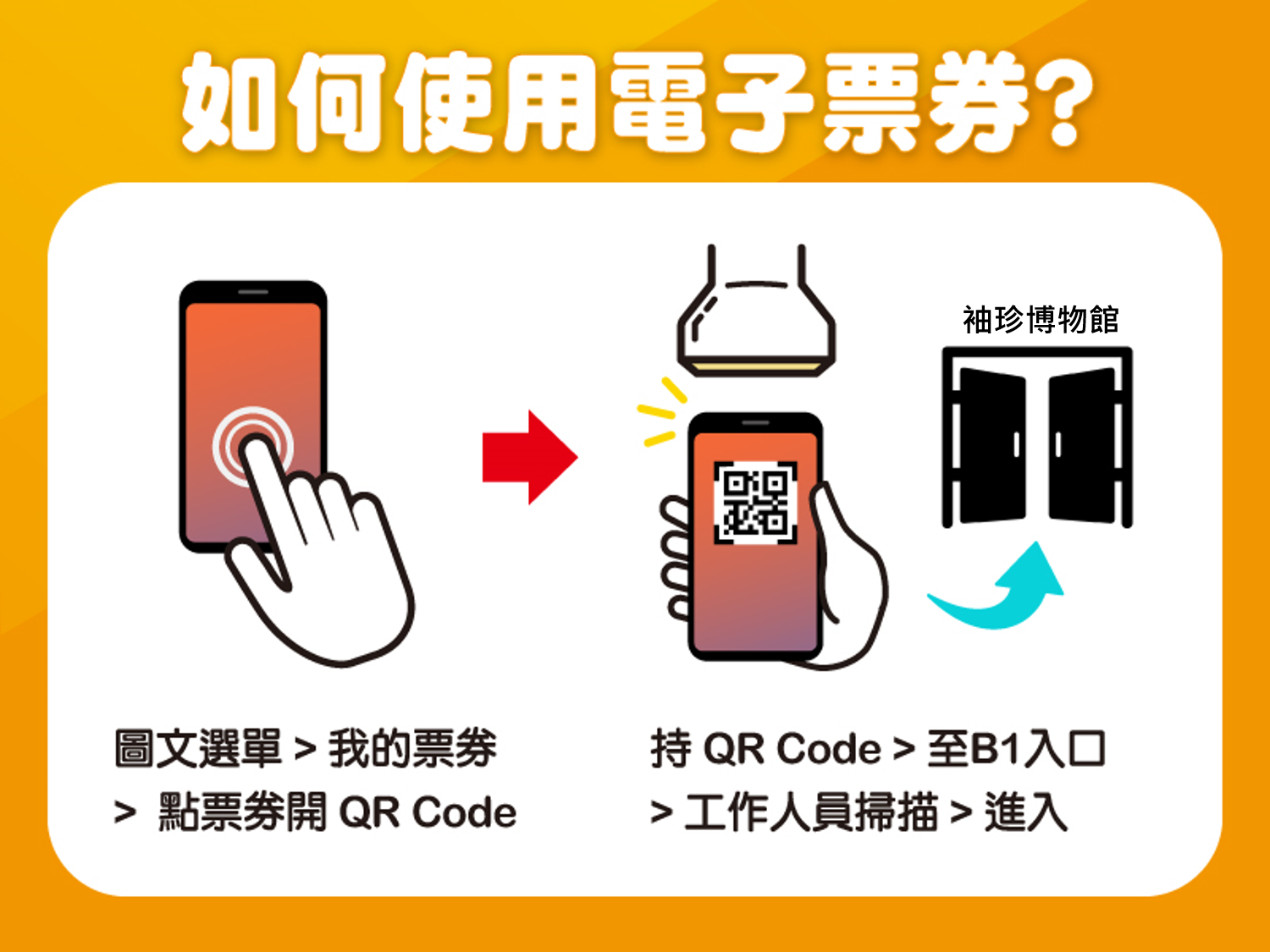 此套票為即買即用的電子票,請攜帶電子票證(購買後前往T-Life line帳號>我的票券>打開票券QR Code)至指定兌換處核銷入場。