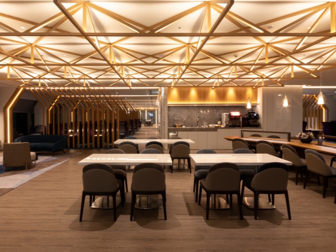東方宇逸貴賓室位於桃園國際機場第二航廈四樓管制區內,提供約200個舒適座位。採「木質設計」為主要基調,象徵山岳神木的雄峙與懷抱;穿透式格柵空間,提供開闊與寧靜的兼容並蓄。